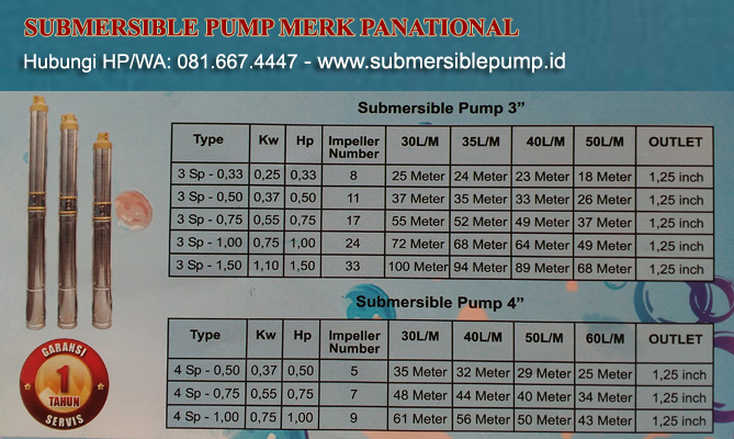 Macam-macam type submersible pum merk panational 4″: