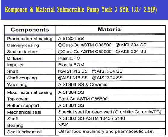 Komponen & Material Submersible Pump York 3 SYK 1.8/ 2.5(P):